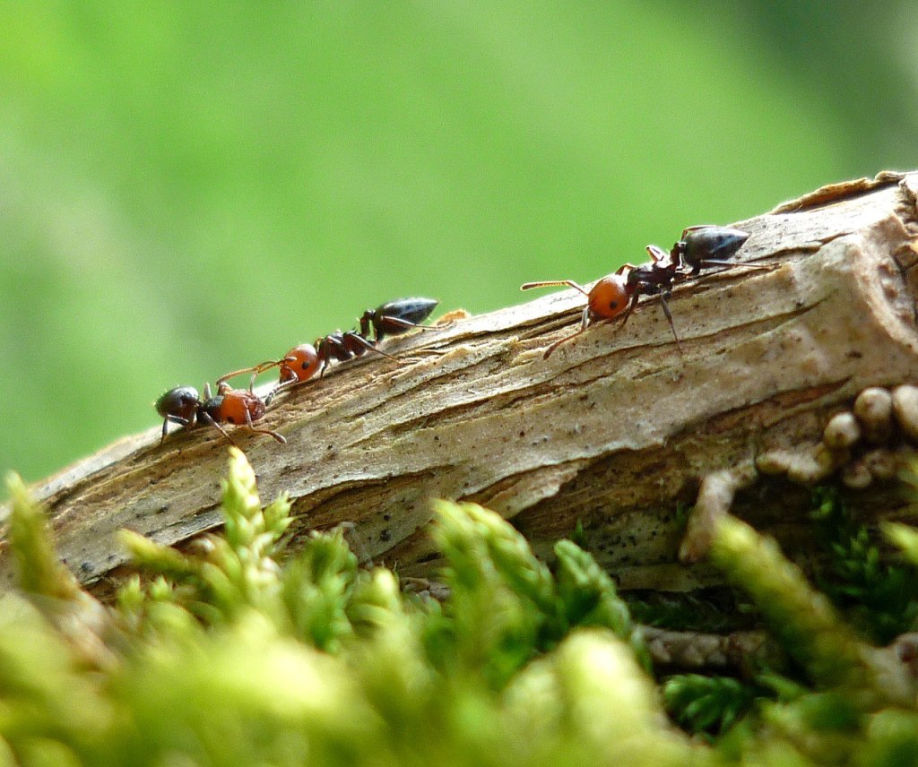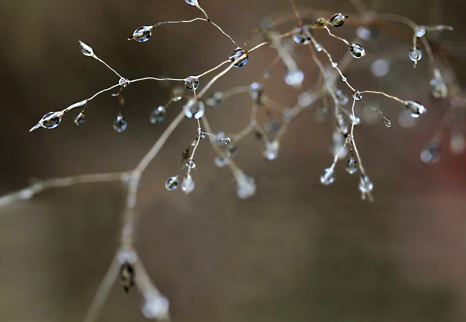 Delle formiche che fanno su e giรน dal loro formicaio a delle gocce d’acqua che diventano gioielli sopra un filo di erba secca.