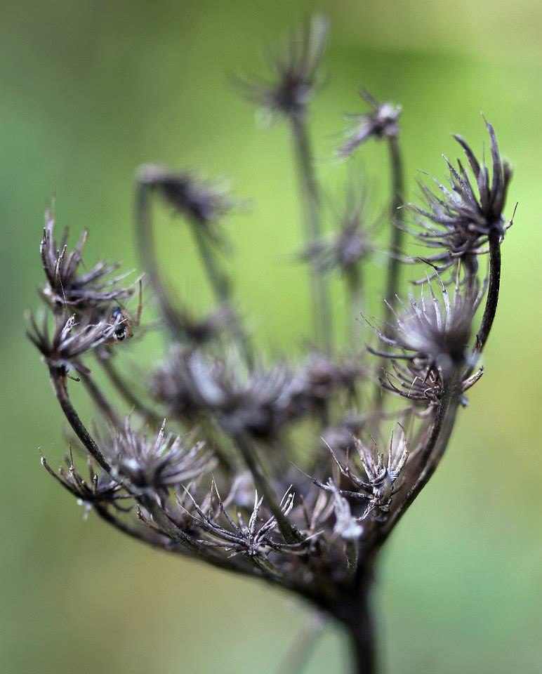 La delicatezza di un ricciolo di erba secca o il dettaglio geometrico di un fiore secco.